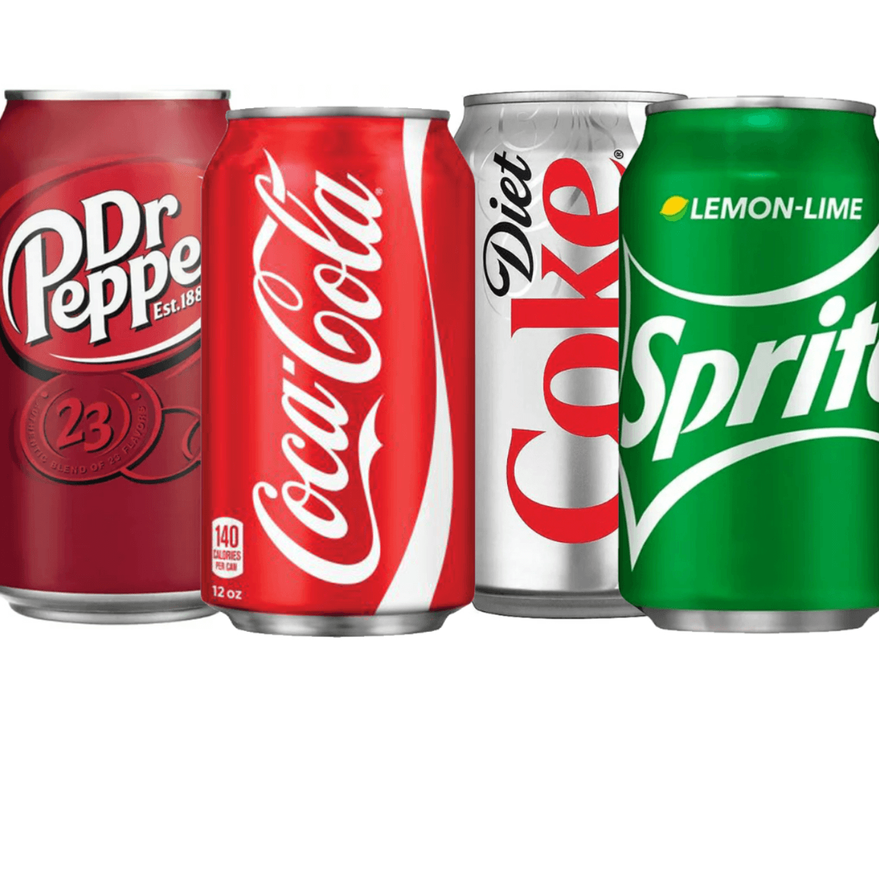 Coke, diet Coke, Sprite, Dr. Pepper, lemonade, iced tea, and root beer