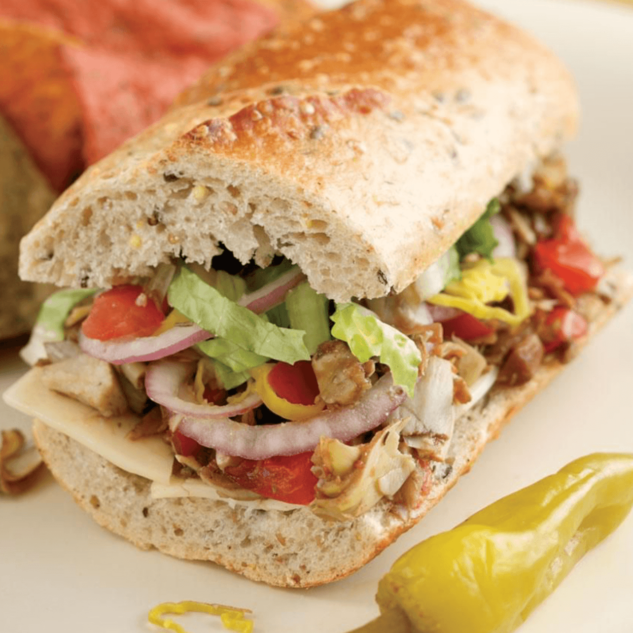 Grilled angus beef, onions, green peppers, mushrooms, melted cheese, and mustard. Try it BBQ style! The sub can be made with chicken