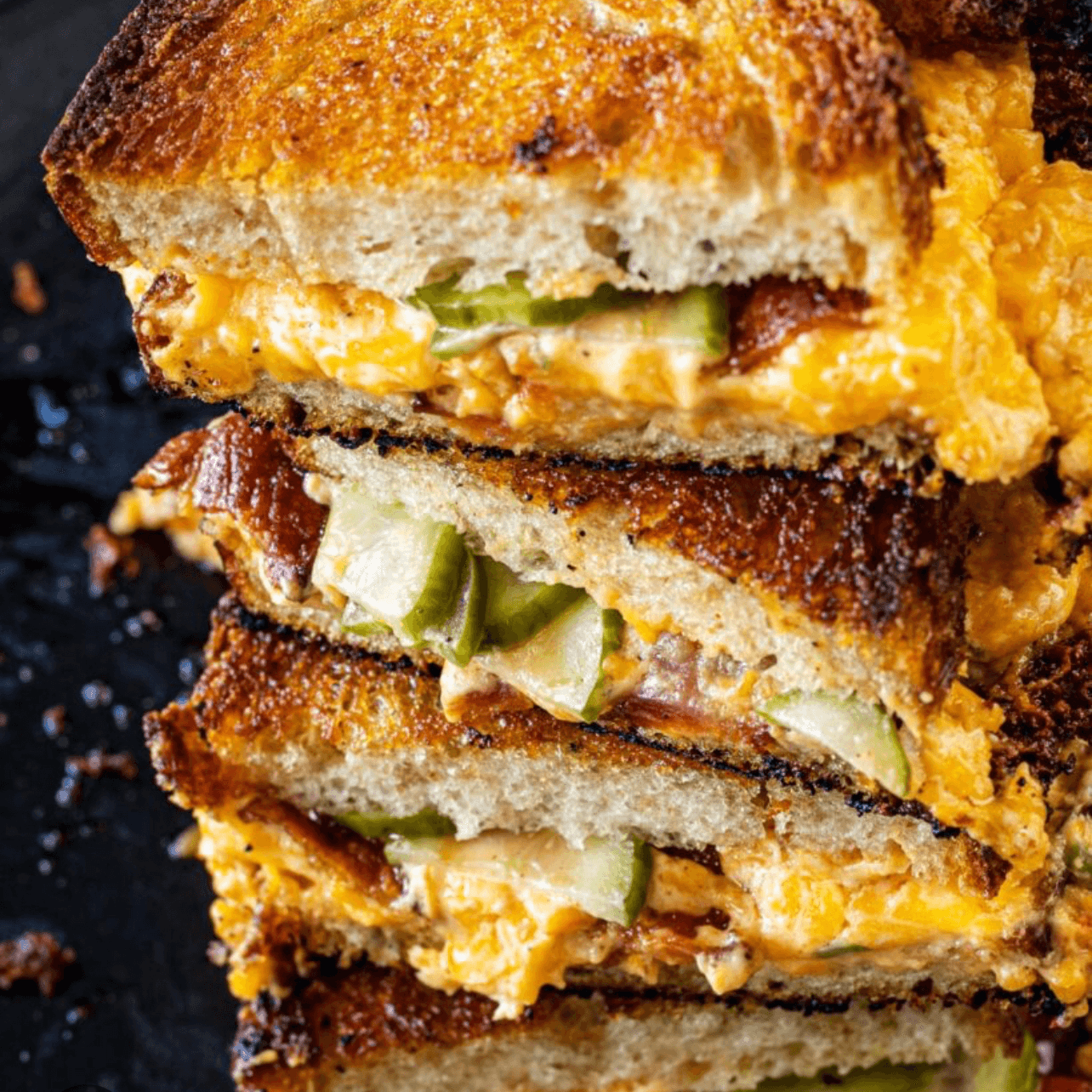 Pesto artichoke mayonnaise, bacon, red onions, tomato, with melted American and provolone cheeses