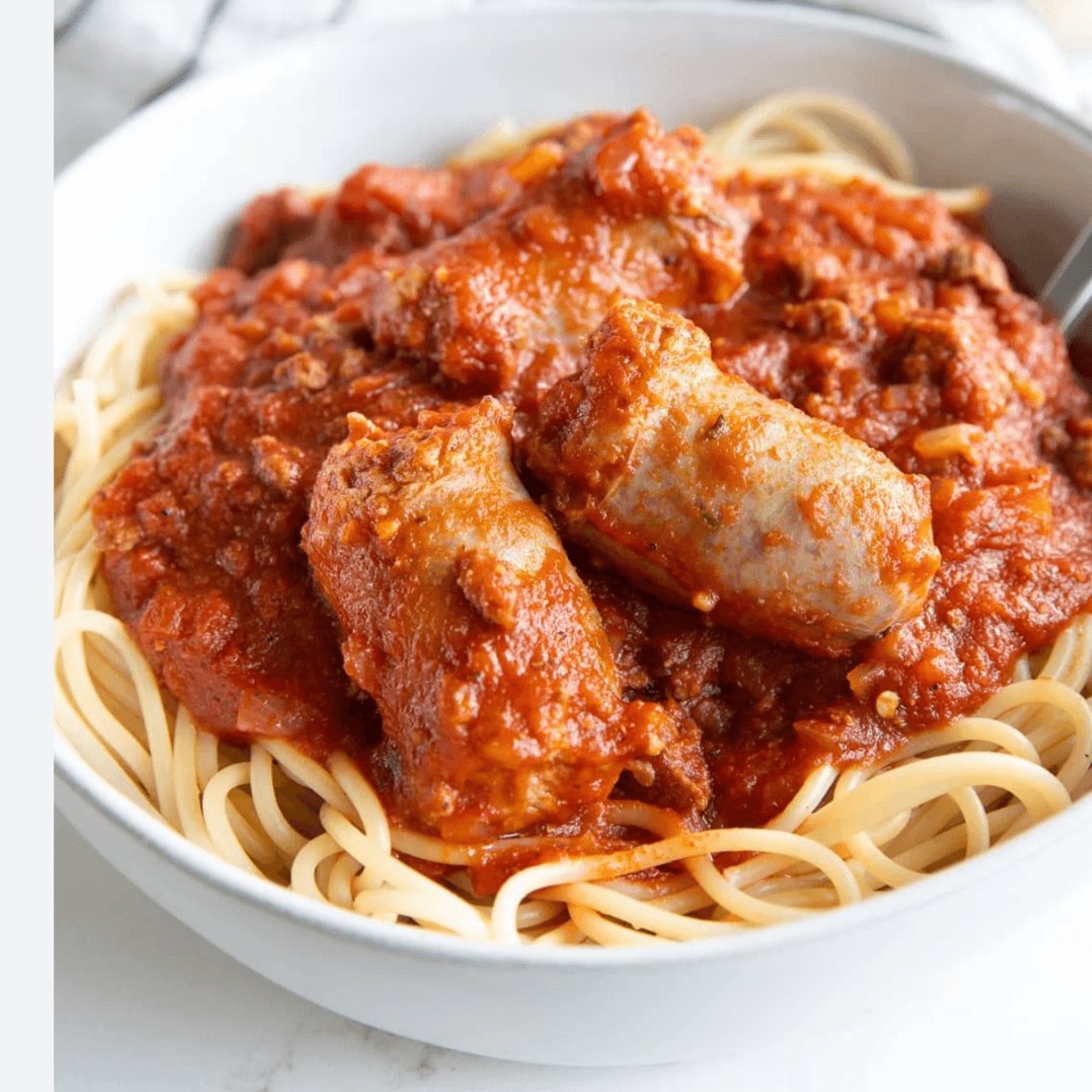 Meat sauce and sausage over pasta. Choose from spaghetti, ziti, angel hair, or fettuccine. Served with garlic bread or breadsticks