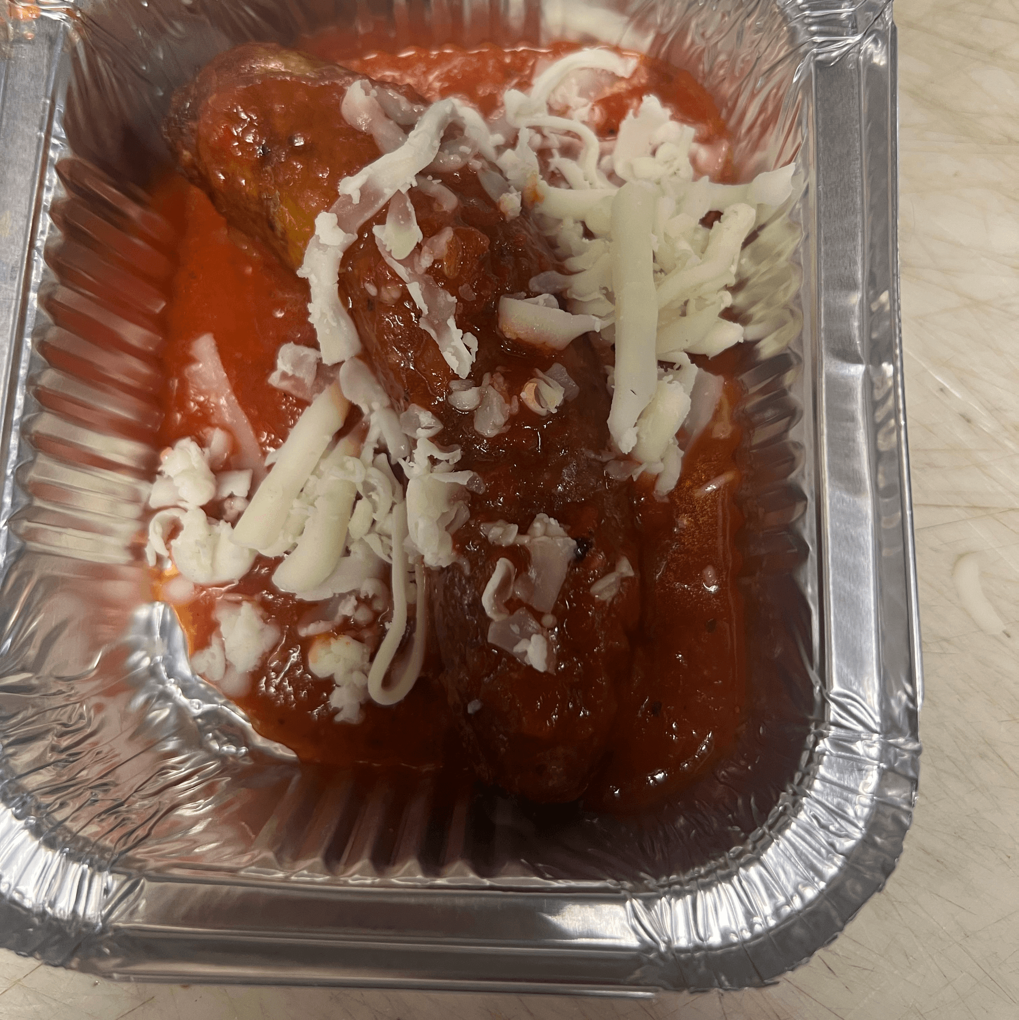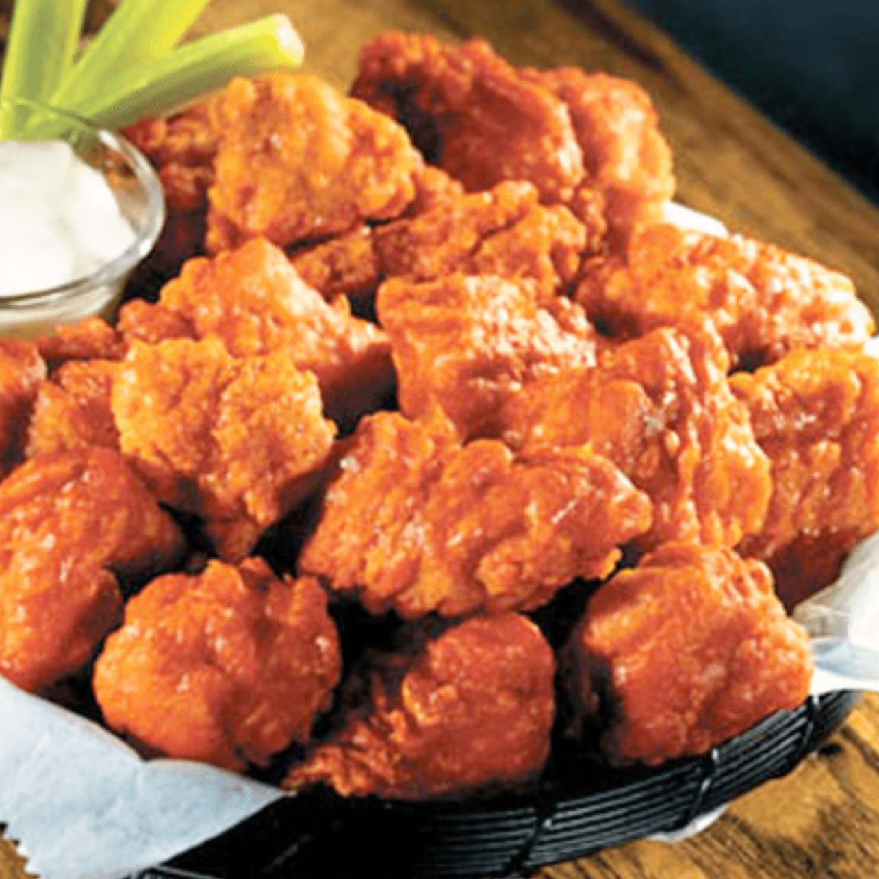 Classic buffalo style homemade. Served with ranch dressing and spicy BBQ sauce