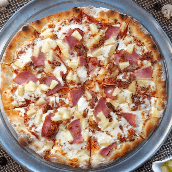 Ham, pineapple & bacon. Try it with BBQ sauce!