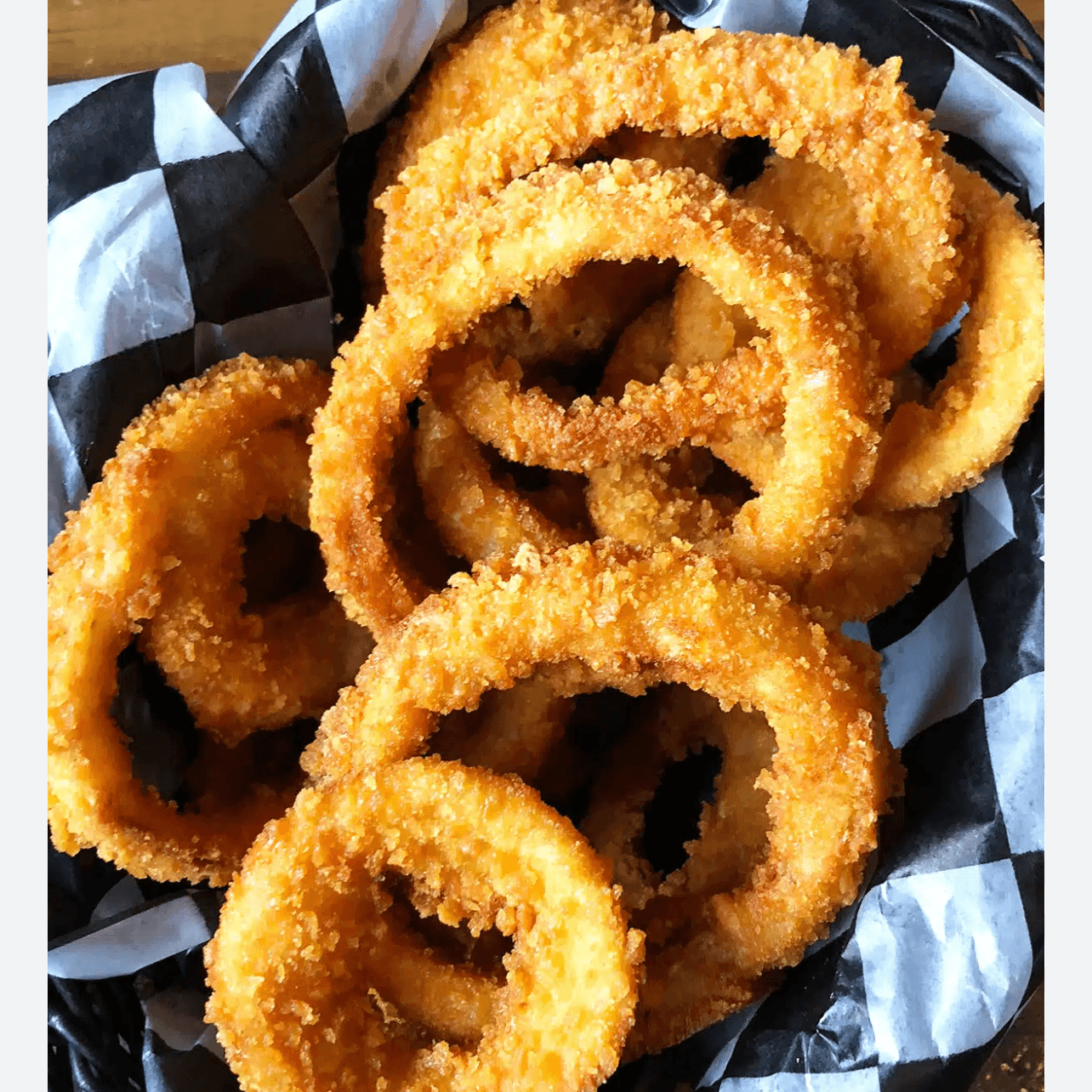Crispy golden-fried onion rings, perfectly seasoned for a savory crunch